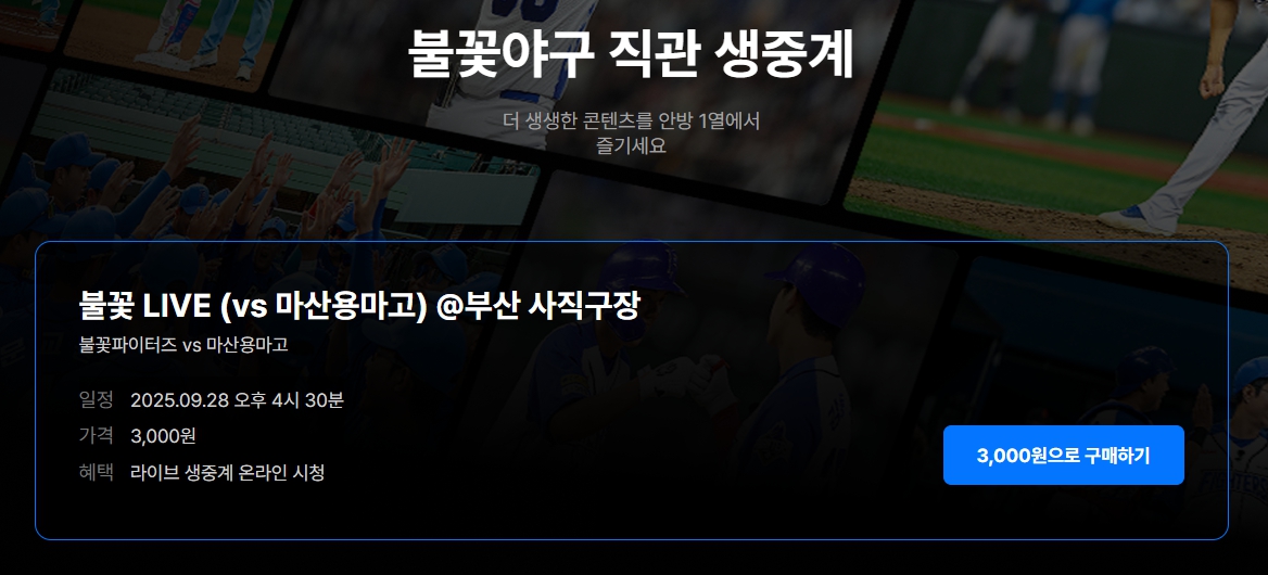 | 불꽃야구 직관 경기 정보 예매 가격 (0) | 2025.10.01 |