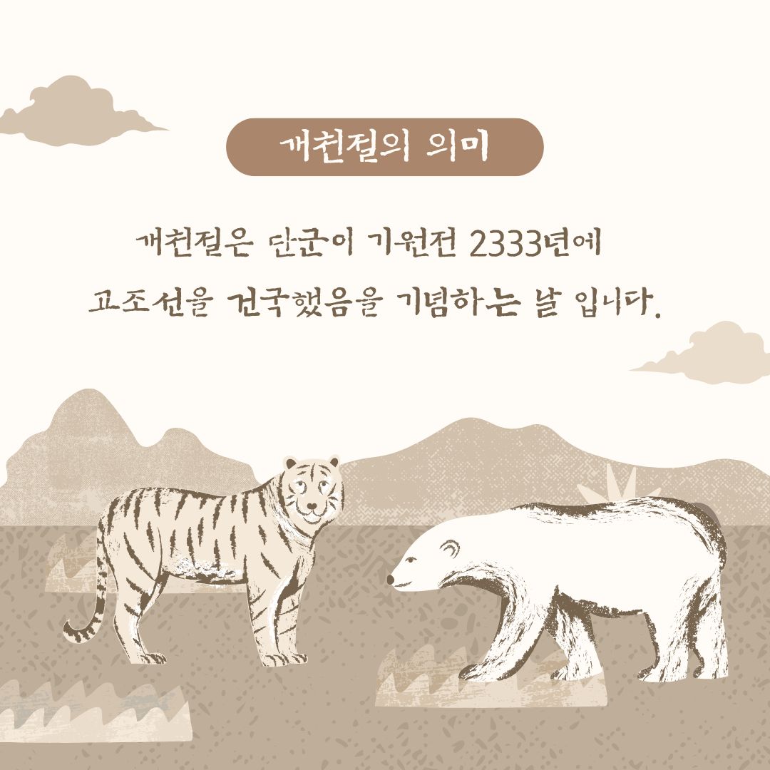 개천절은 우리 민족이 처음 나라를 세운 날을 기념하는 뜻깊은 국경일입니다. 개천절의 뜻을 되새기고, 공휴일로서 가족과 함께 의미 있는 시간을 보내며, 개천절 노래와 다양한 행사를 통해 우리 역사의 소중함을 느껴보는 하루가 되길 바랍니다. 10월 3일, 태극기와 함께 개천절의 의미를 다시 한번 마음에 새겨보세요.