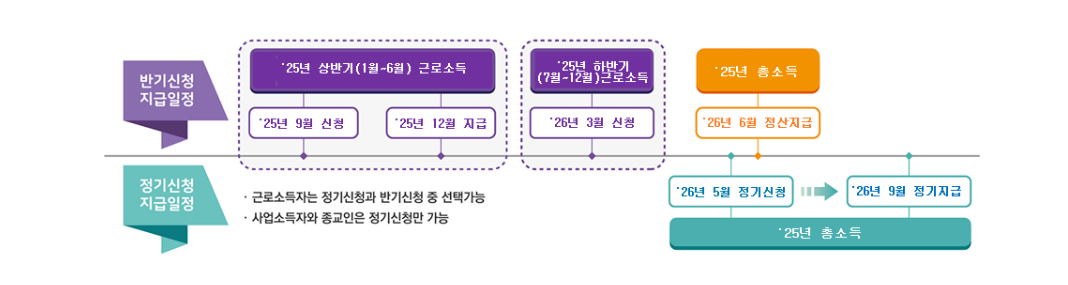 특히 반기신청 제도는 1년에 한 번 받는 정기 신청과 달리 6개월 단위로 일부 금액을 먼저 받을 수 있는 제도라서 근로소득이 있는 분들이 많이 이용하고 있습니다.