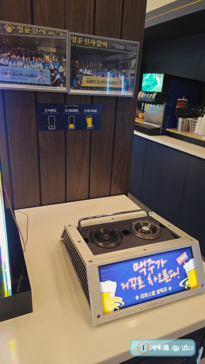 사이드메뉴나 주류도 추가로 주문할 수 있고, 생맥주를 무제한 즐길 수 있는 리버스탭도 있습니다.
