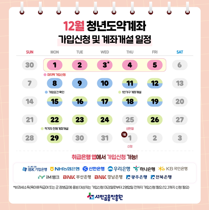 청년도약계좌는 2025년 12월 5일까지 신청할 수 있습니다.
