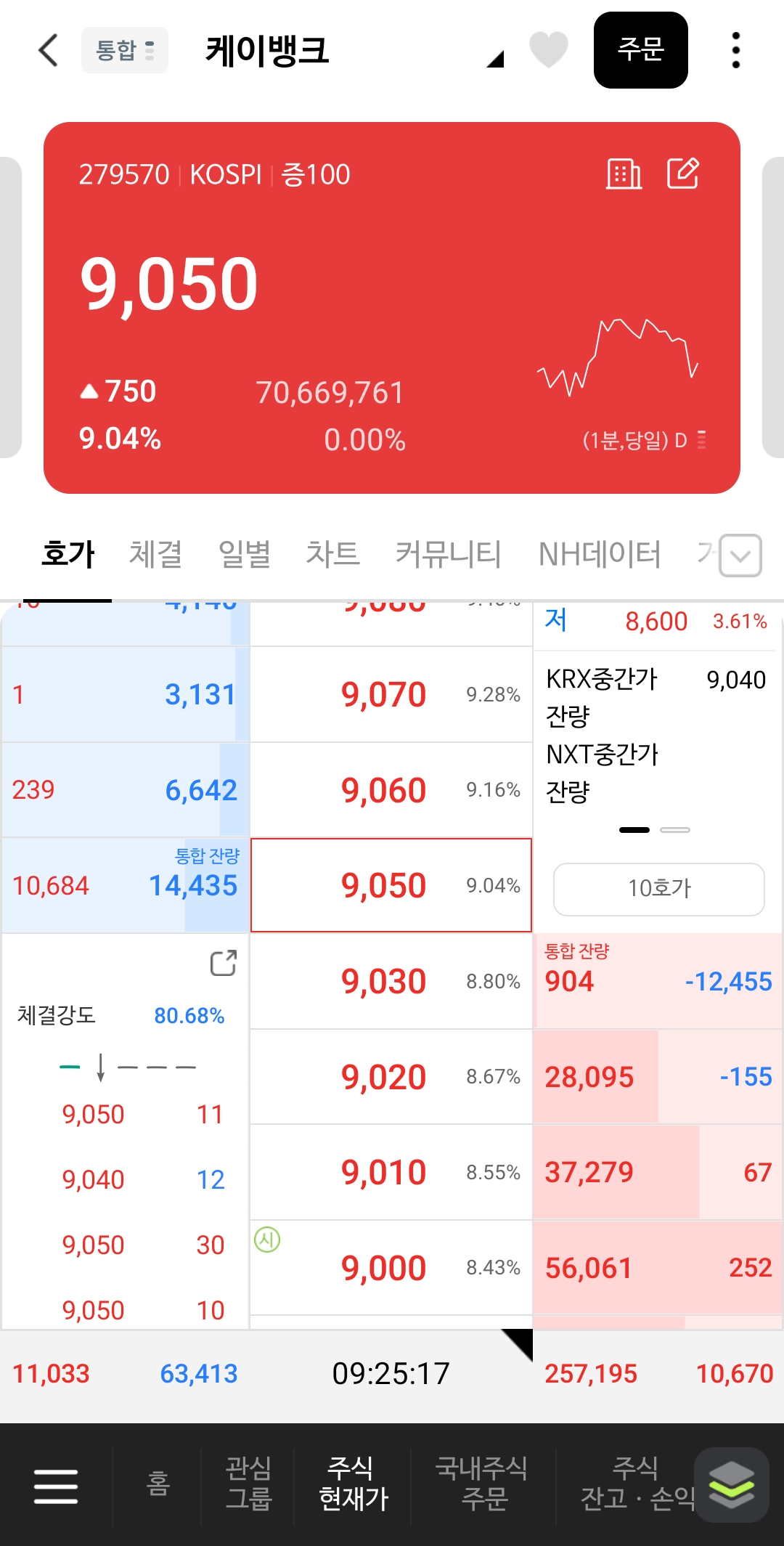 매도호가가 9100원에 몰려있길래 10원 내려서 9,090원 전량 매도! 해버렸어요.
