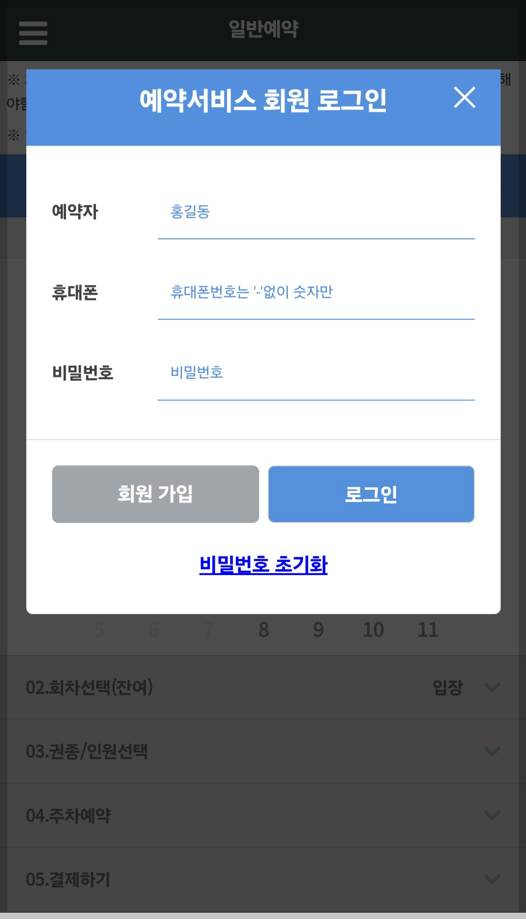 회원가입 후 이름과 전화번호, 비밀번호를 입력하고 로그인을 진행해주세요.