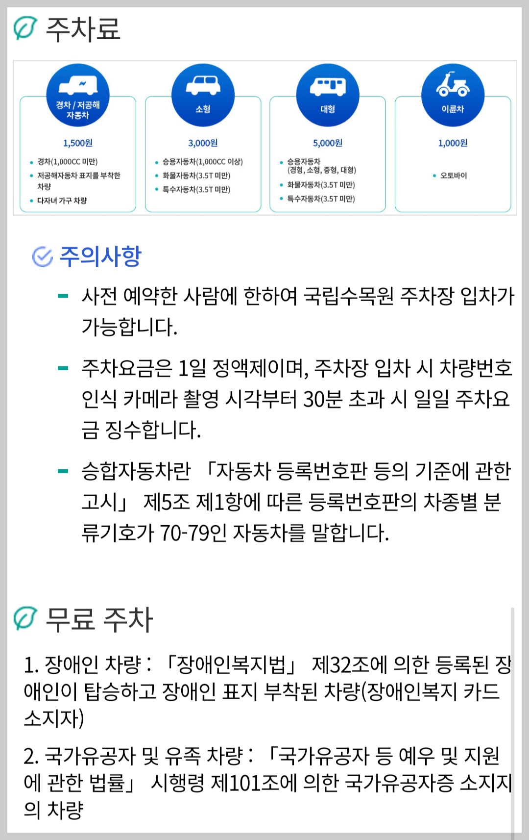 국립수목원 주차요금은 1일 정액제입니다.