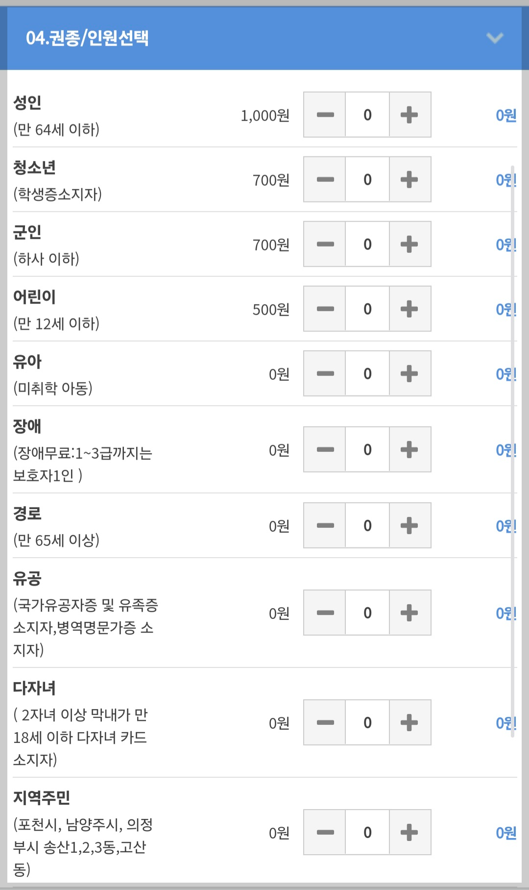 입장 관련 약관을 읽고 동의하면 예약페이지로 넘어갑니다.
