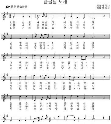 한글날 노래는 한글날 기념식에서 빠지지 않고 불리는 공식 노래입니다. 1957년에 제정되었으며, 최현배 작사, 박태현 작곡으로 만들어졌습니다.