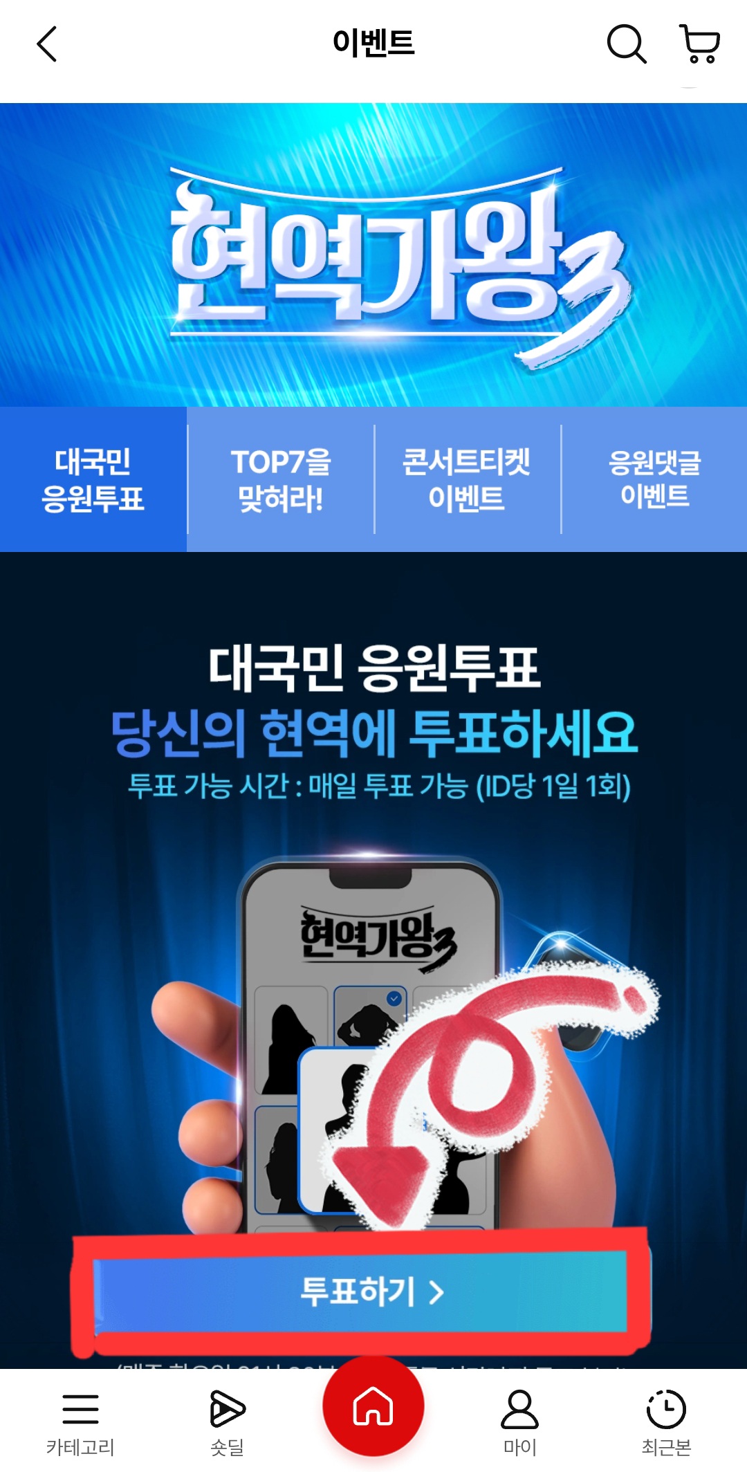 ✅ 현역가왕3 온라인투표 방법 (NS홈쇼핑 앱)