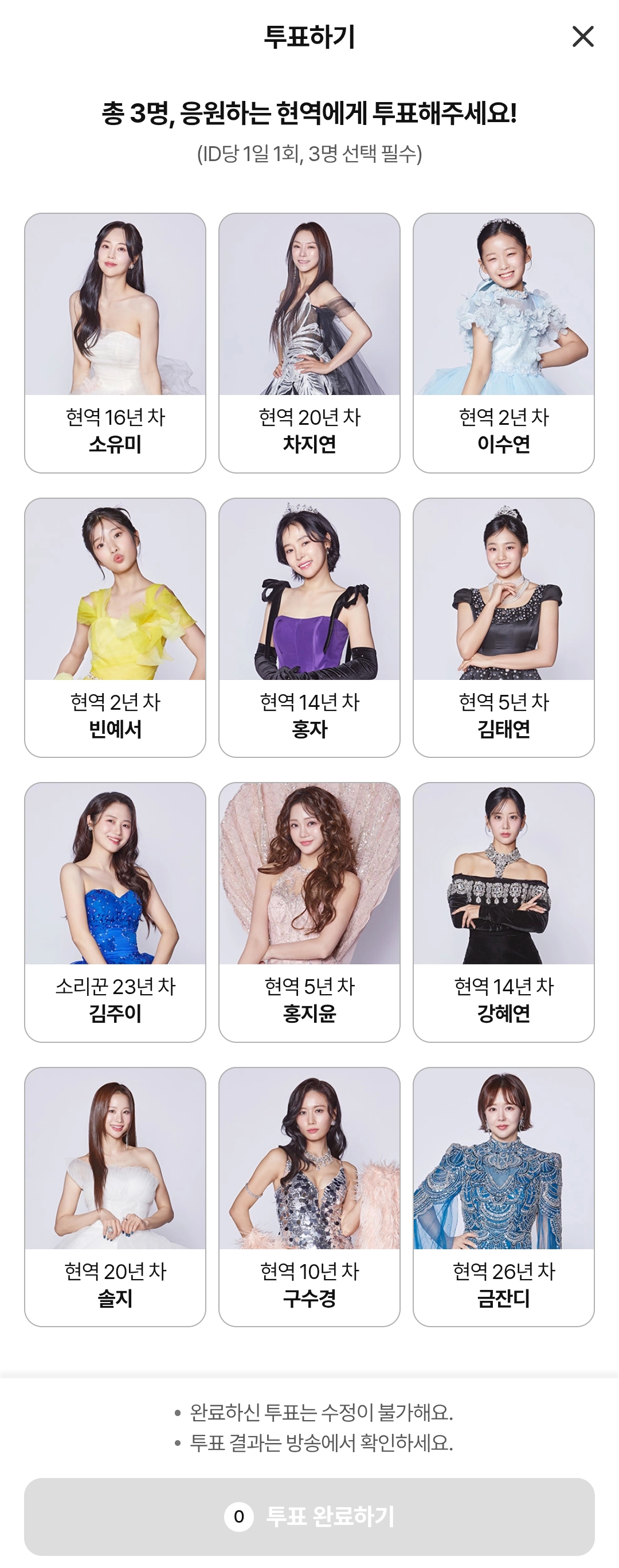 👉 1일 1회 참여 가능하며 3명 필수 선택 (회차별 변동 가능)